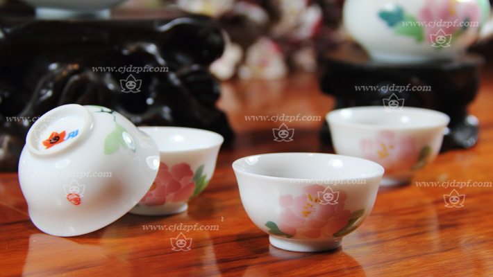 手繪釉下五彩牡丹茶具