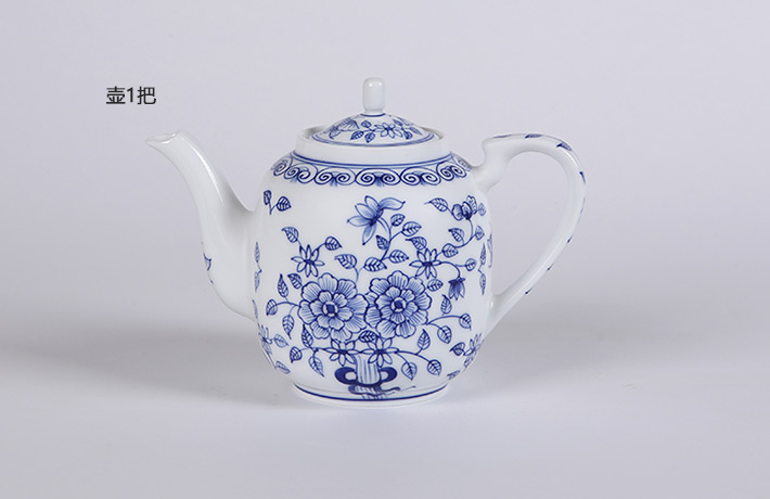 7頭手繪青花茶具(牡丹花)