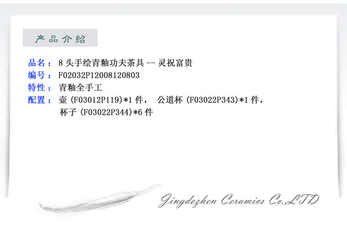 8頭手繪青釉功夫茶具-靈祝富貴