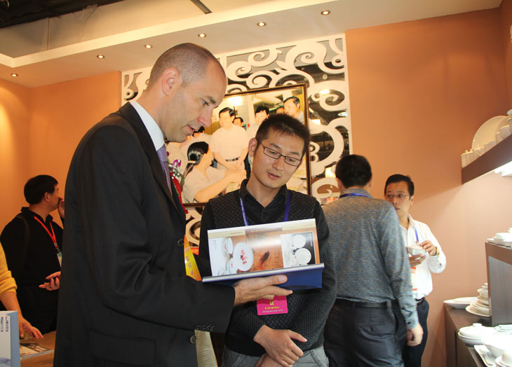 一位瓷博會(huì)邀請(qǐng)的外國貴賓在參觀完我們的展館后,對(duì)我公司的產(chǎn)品非常感興趣,表示有意向合作,領(lǐng)取了公司的產(chǎn)品畫冊(cè)