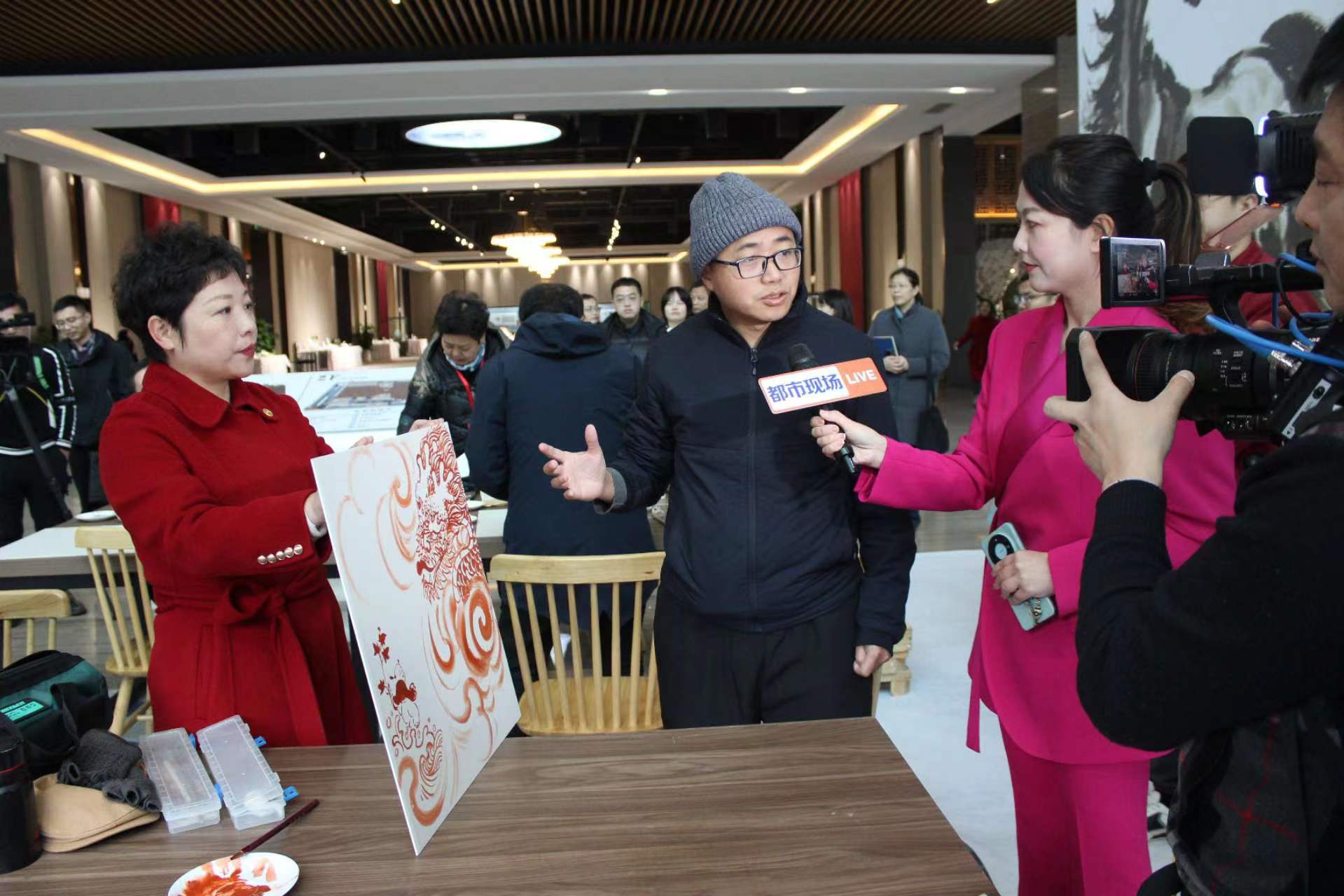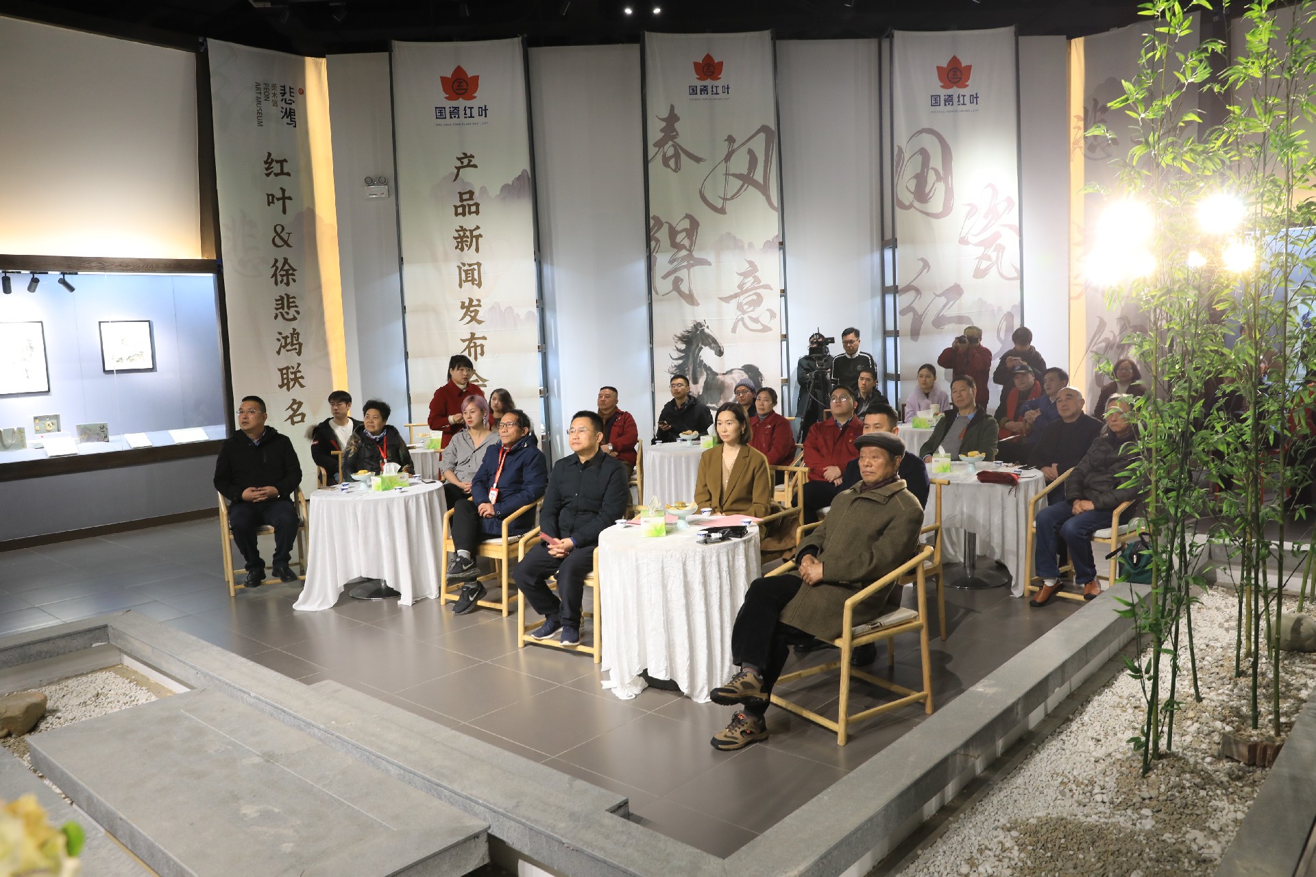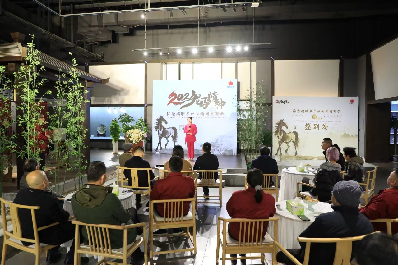 2024年1月3日上午,新年伊始,景陶集團(tuán)迎來了首個開門紅的強(qiáng)IP合作聯(lián)名產(chǎn)品新品發(fā)布會,國瓷紅葉與徐悲鴻美術(shù)館聯(lián)名茶具“春風(fēng)得意“新品發(fā)布會暨徐悲鴻藝術(shù)客廳落地景德鎮(zhèn)揭牌儀式在景德鎮(zhèn)陶瓷集團(tuán)國瓷館舉行。景德鎮(zhèn)市副市長高曉云,原市委常委、原景德鎮(zhèn)陶瓷股份公司黨委書記、董事長、中國工藝美術(shù)大師余仰賢,重慶徐悲鴻美術(shù)館館長楊凈,重慶徐悲鴻美術(shù)館副館長王澤婷,國家一級美術(shù)師、清華美院客座教授洪飛,景德鎮(zhèn)陶瓷大學(xué)教授、博士生導(dǎo)師曹春生,景德鎮(zhèn)陶瓷大學(xué)教授、碩士生導(dǎo)師楊冰,中國工藝美術(shù)大師楊淑凝,江西省工藝美術(shù)大師潘凱聲,江西省民協(xié)主席、江西省工藝美術(shù)大師孫立新,景德鎮(zhèn)中外陶瓷藝術(shù)協(xié)會會長金大翁,景德鎮(zhèn)中外陶瓷藝術(shù)協(xié)會常務(wù)副會長金仲,景德鎮(zhèn)市瓷游記文化發(fā)展有限公司創(chuàng)始人范年豐,景德鎮(zhèn)陶瓷集團(tuán)黨委書記、董事長鄧景揚(yáng),景德鎮(zhèn)陶瓷集團(tuán)黨委副書記、總經(jīng)理邢浩及景陶集團(tuán)領(lǐng)導(dǎo)班子成員出席參加發(fā)布會。