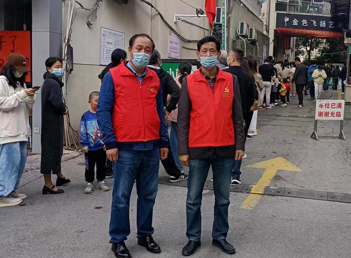 副書記陳華、黨員劉志華居住在高風(fēng)險小區(qū)內(nèi),但是他們無懼風(fēng)險,主動請纓,負責(zé)值守被封控的樓棟,確保疫情阻斷在網(wǎng)格內(nèi)。