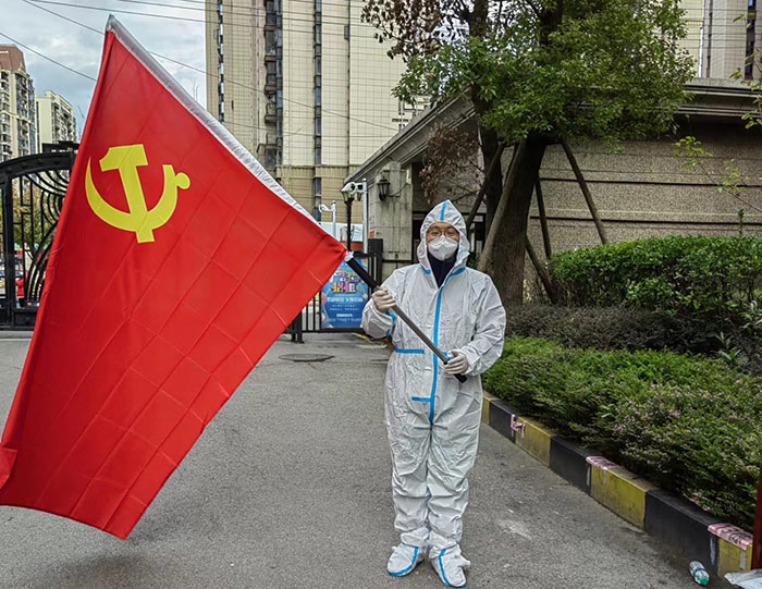 組織委員邵建華,自疫情發(fā)生以來,每天都值守在疫情一線,天沒亮他就到核酸檢測崗去維持秩序,核酸檢測完他又去卡口執(zhí)勤。不僅如此,因小區(qū)封控,環(huán)衛(wèi)車進不來,他每天用自己的雙手將居民的生活垃圾一桶一桶的運出,不怕臟,不怕累,只為還原小區(qū)一個干凈衛(wèi)生整潔的環(huán)境。