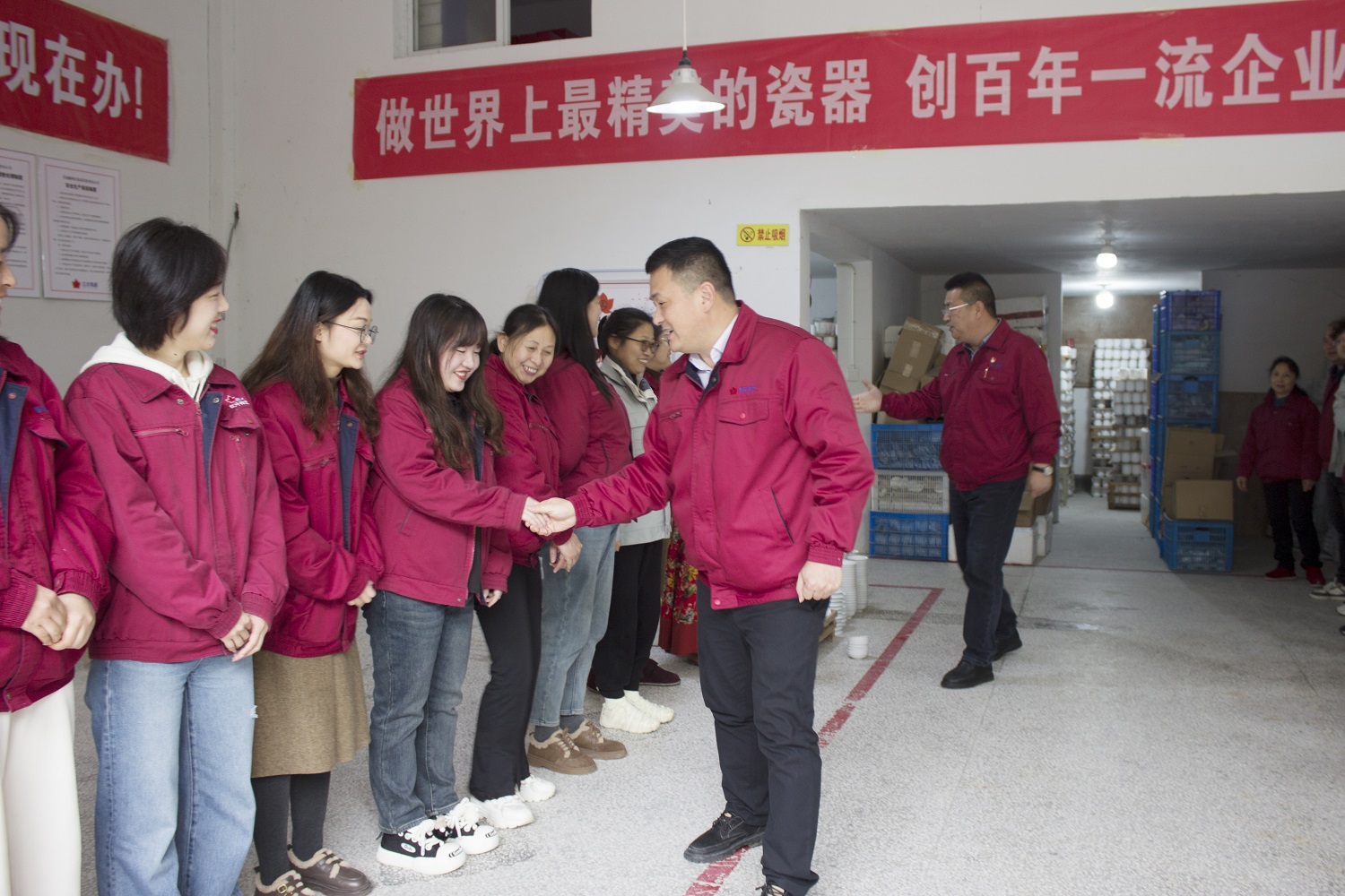 在金品陶公司、紅葉公司一廠、三廠、研究所和窯具廠,領(lǐng)導(dǎo)們與夾道歡迎的員工致以新春祝福。希望生產(chǎn)口在提質(zhì)增效上要有新?lián)?dāng)。