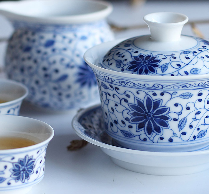 8頭玲瓏功夫茶具開(kāi)堂山水蓋碗